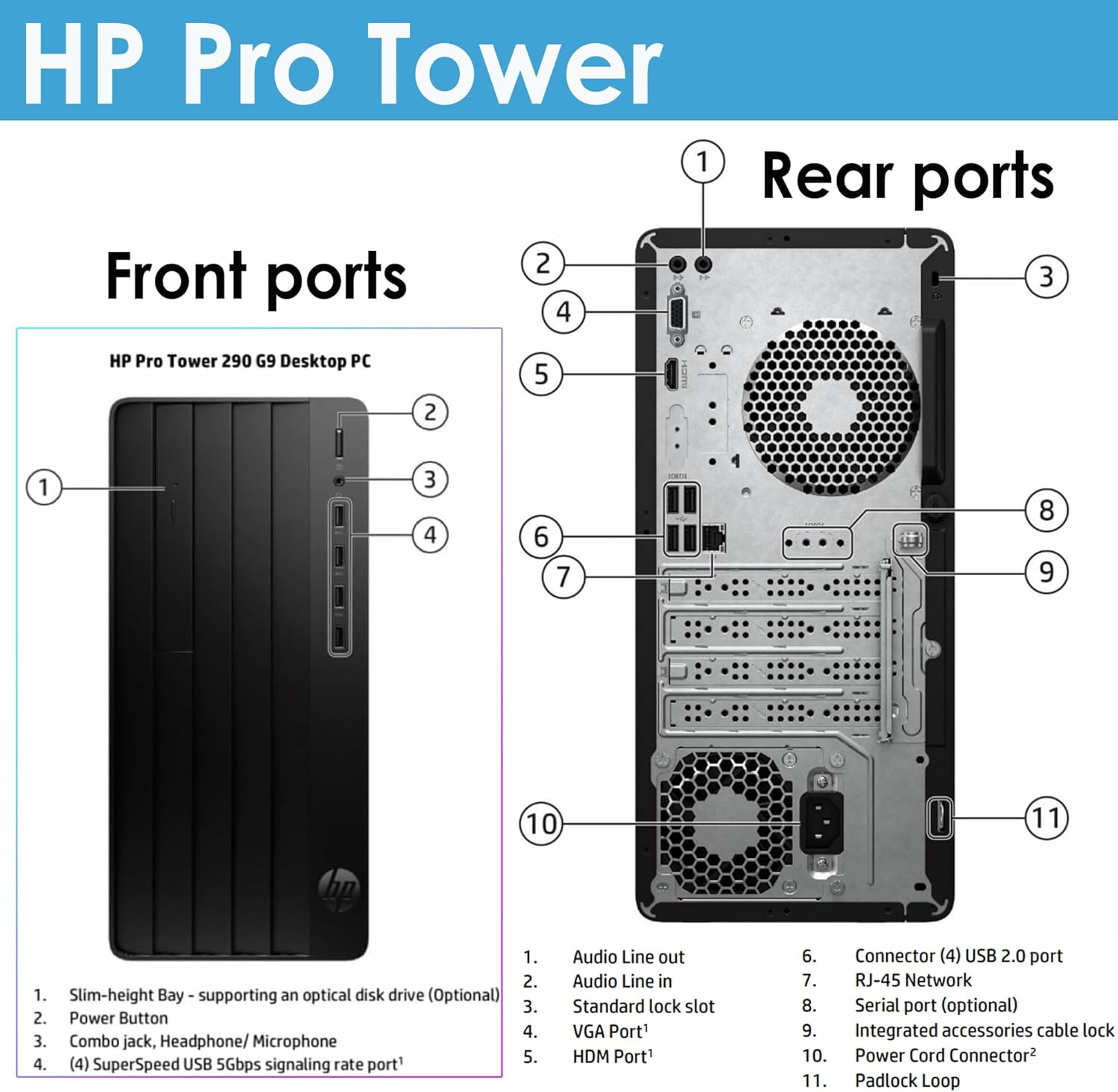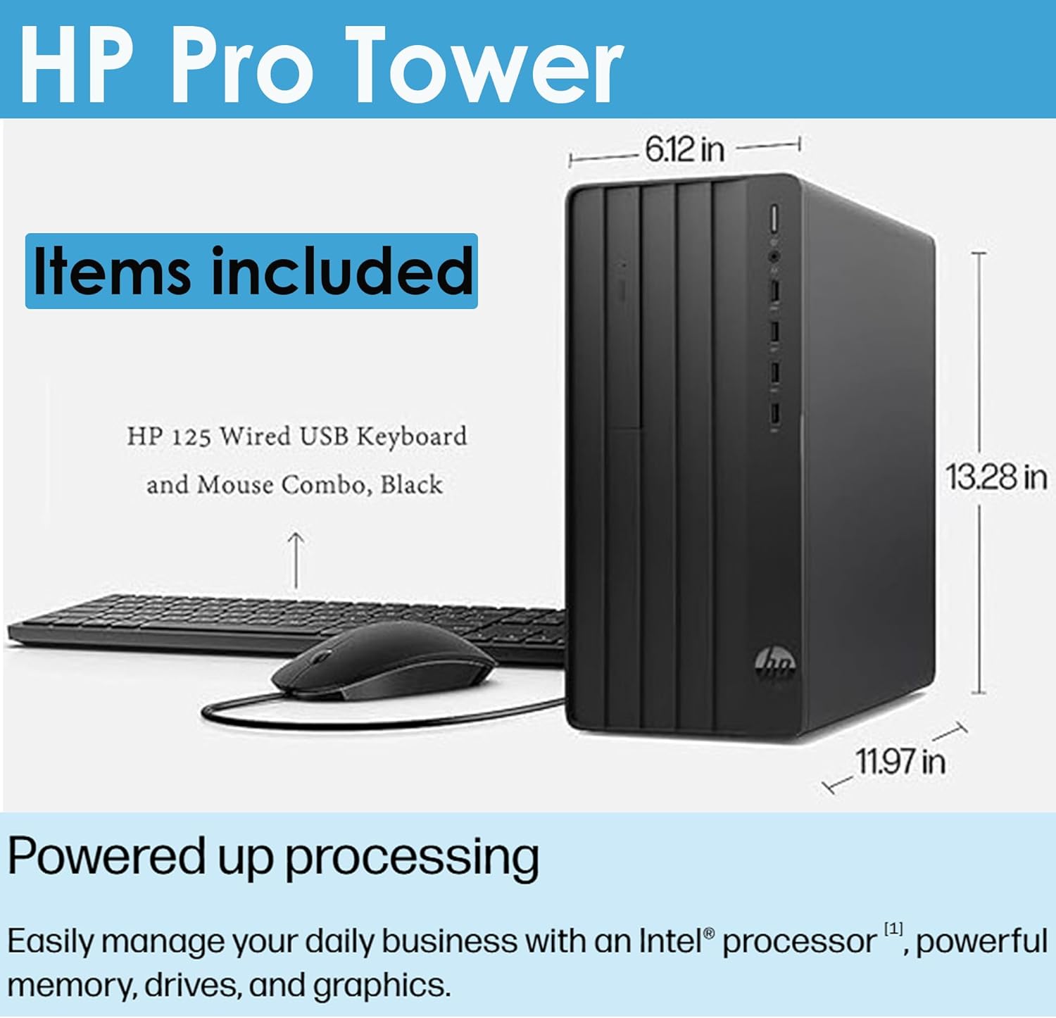 The HP Desktop Tower Pro includes a stylish black HP 125 wired USB keyboard and mouse set as a special bonus. Designed for aesthetics and durability, these accessories promise to keep your workspace tidy while providing comfort and convenience for work and entertainment. The keyboard and mouse set is the perfect complement to the HP Desktop Tower Pro, offering a complete and integrated computing experience.