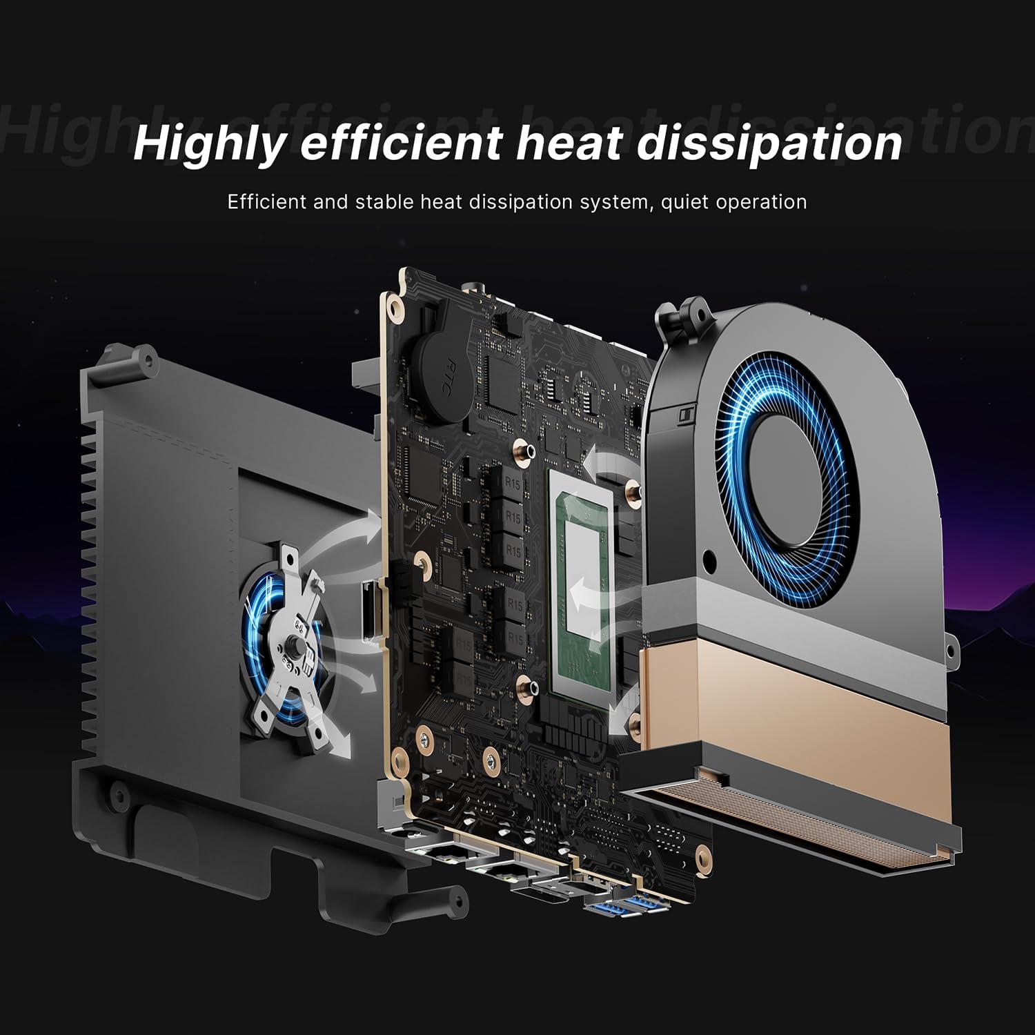 One of the standout features of the BOSGAME M4 Oculink Mini PC is its cooling system. The device uses a copper tube and fan cooling combination with high-spec cooling silicone grease, allowing for faster heat transfer and effectively reducing CPU temperature under high load. This cooling system maintains the CPU’s benchmark computing speed, making it an excellent choice for a mini gaming PC.