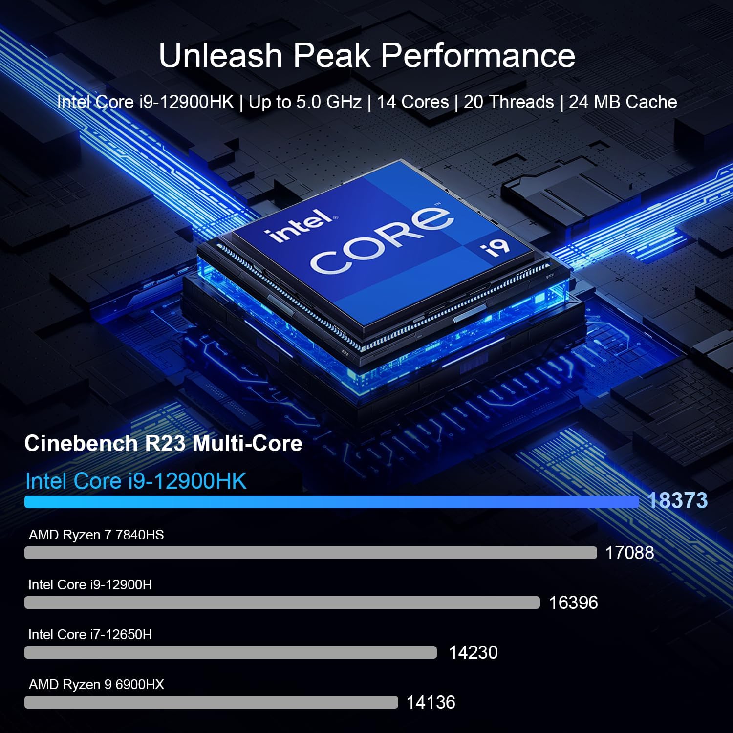 The Ninkear Mini PC is powered by the 12th Gen Intel Core i9-12900HK processor, which boasts an impressive 14 cores and 20 threads. With a maximum clock speed of up to 5.0GHz, this processor delivers exceptional performance, making it ideal for applications such as 4K video editing, coding, and multitasking. The combination of high-speed processing and ample memory ensures seamless productivity, allowing users to work efficiently and effectively.