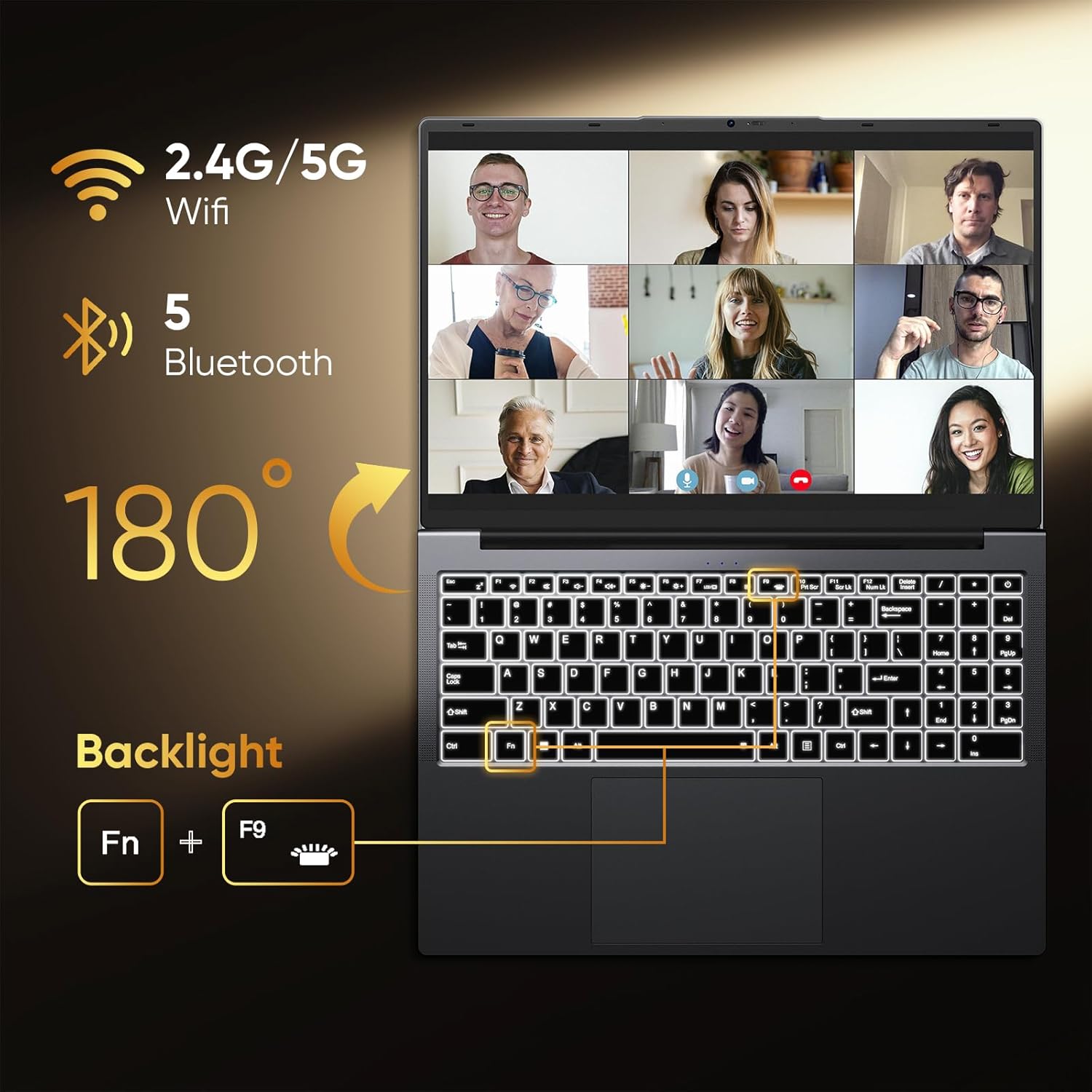 The EYY 16″ Laptop Computer supports WIFI5 802.11 and Bluetooth 5.0, ensuring stable and fast wireless connections whether working from home or traveling. The 44Wh battery provides a decent battery life, and the backlit English keyboard allows users to maintain efficient work productivity from day to night.