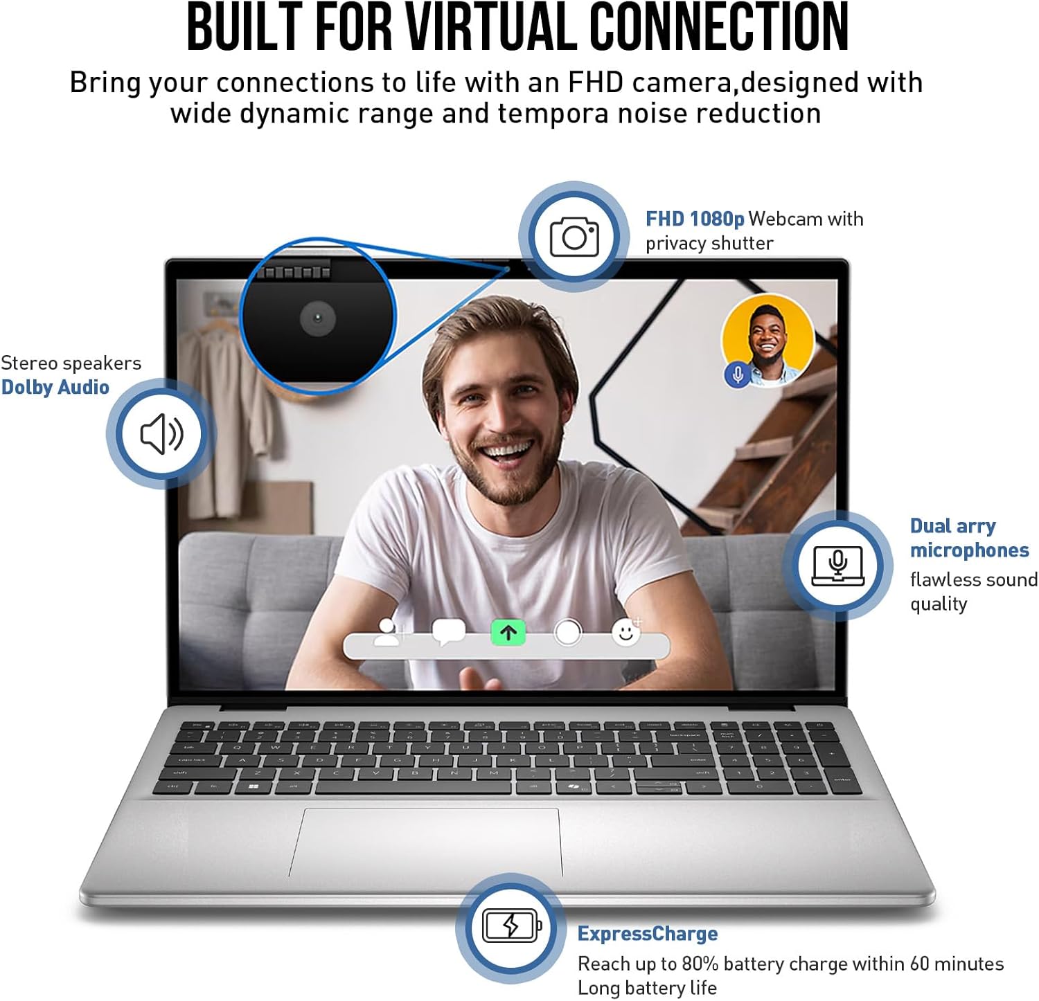 The laptop boasts a modern aesthetic, with a spacious backlit keyboard featuring a numeric keypad for improved usability in any lighting condition. The integrated fingerprint sensor provides quick and secure access to the system. The sturdy aluminum design is complemented by an FHD wide-angle webcam, dual mics, and a mechanical privacy shutter, ensuring secure and clear communication.