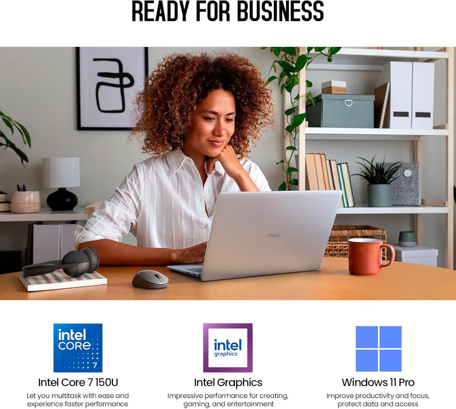 The laptop features a stunning 16″ FHD+ (1920 × 1200) IPS panel with a 16:10 aspect ratio and touch functionality. The display produces crisp visuals and wide workspace clarity, making it perfect for entertainment, study, and productivity. The ComfortView Plus technology minimizes blue-light exposure, reducing eye strain and promoting a comfortable viewing experience. With Intel Graphics, the laptop delivers fluid visuals, ensuring a seamless and immersive experience.