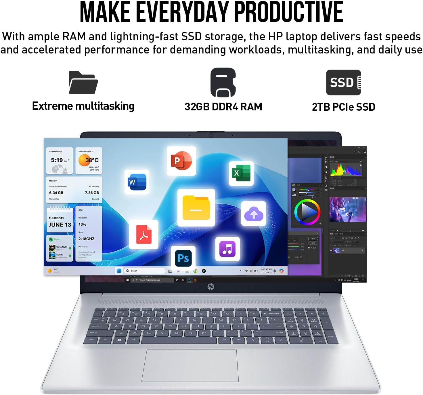 At the heart of the HP 17 Inch Laptop Computer is the latest Intel Core 7 processor (10 cores, 12 threads), which delivers faster speed than the Intel Core i7-1355U. This powerful processor, combined with 32GB of high-speed DDR4 RAM, ensures seamless multitasking and quick response times. The laptop also features a 2TB PCIe SSD, which provides rapid boot times and generous storage. With Intel Graphics, the laptop ensures smooth visuals and responsive performance, making it ideal for gaming, streaming, and entertainment.